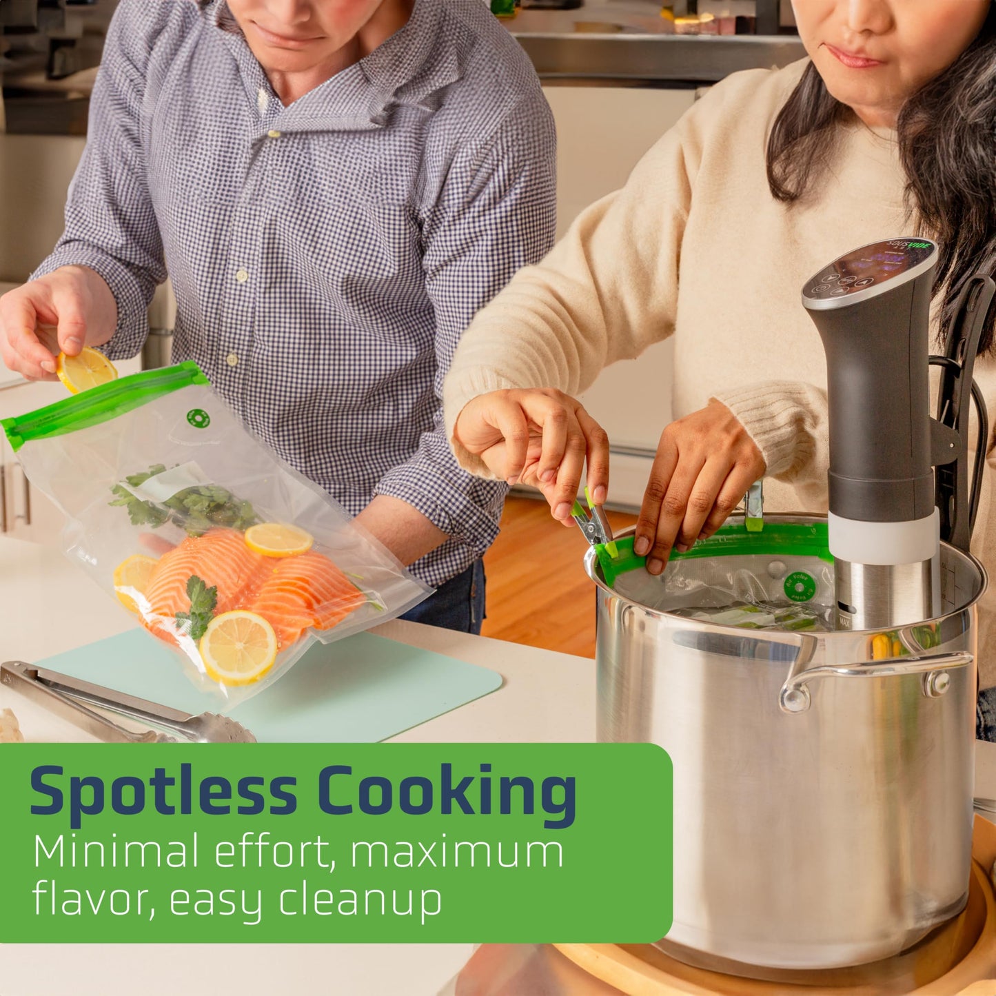 - Complete Sous Vide Kit: Includes sous vide cooker, 15 reusable vacuum bags, vacuum pump, sealing clips, and cookbook; everything needed to start cooking delicious, restaurant-quality meals at home