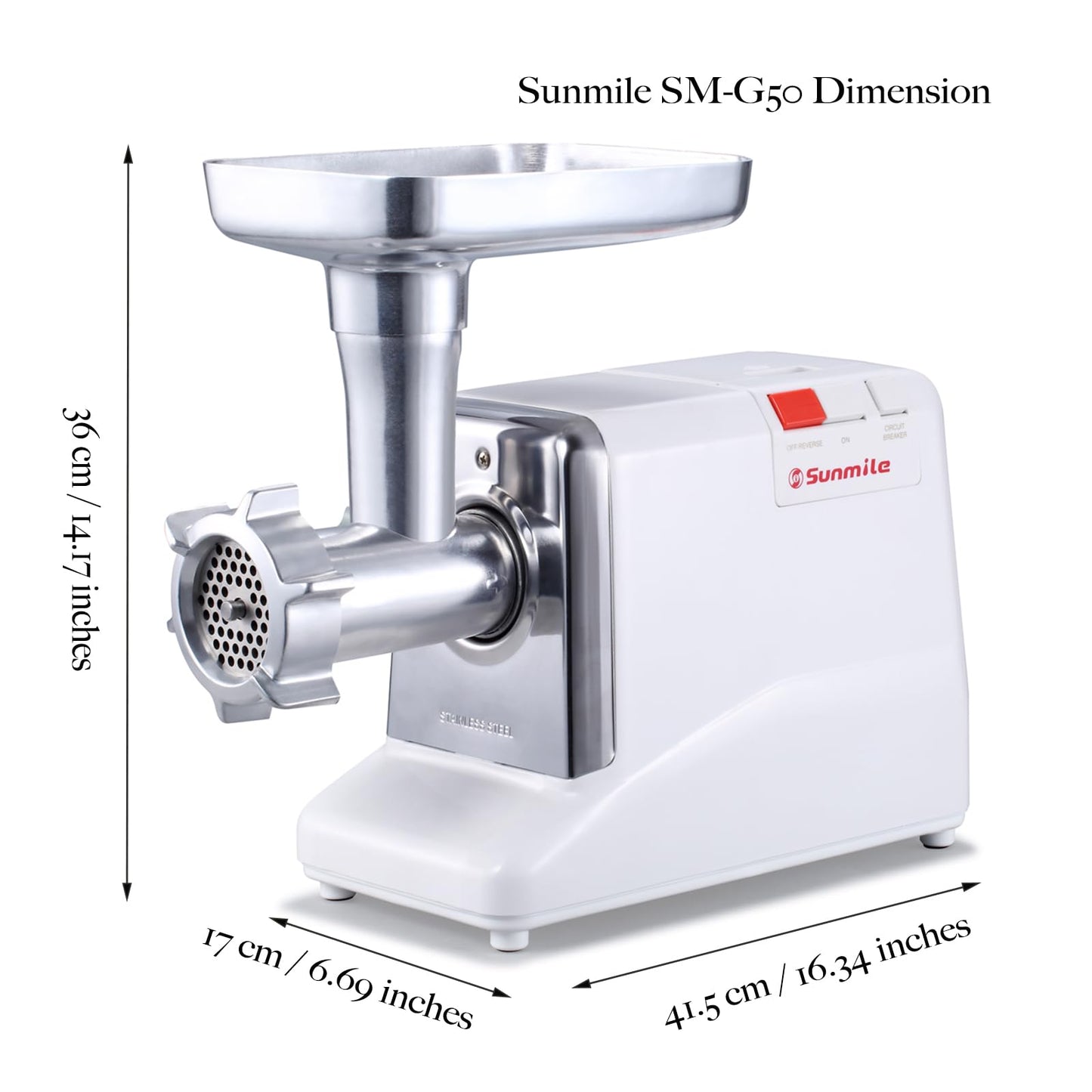 Sunmile SM-G50 ETL Electric Meat Grinder - Max 1.3 HP 1000W Heavy Duty Meat Mincer Sausage Grinder - Metal Gears, Reverse, Circuit Breaker, Stainless Steel Cutting Blade and Plates, 1 Sausage Stuffs