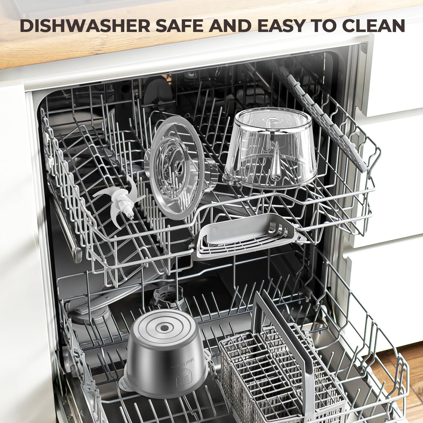 - 【Time Saver】With a 400W powerful motor and uniquely-sharp stainless steel 4 bi-level blades, you can easily crush, mince, and puree with precise control. Simply pulse by pressing the speed button for a few short bursts, and your task will be finished in just 6-10 seconds.
