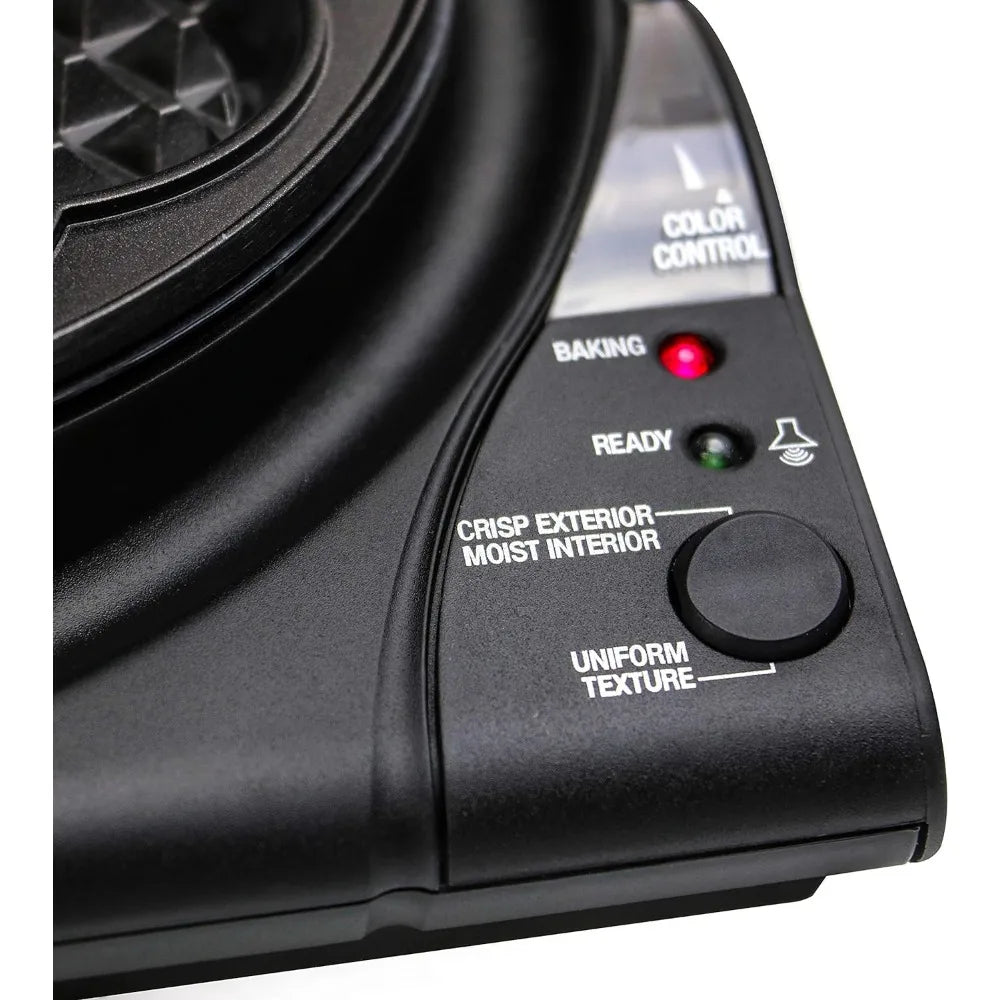- ADVANCED - Floating top baking plate insures a uniform waffle thickness by evenly distributing the batter