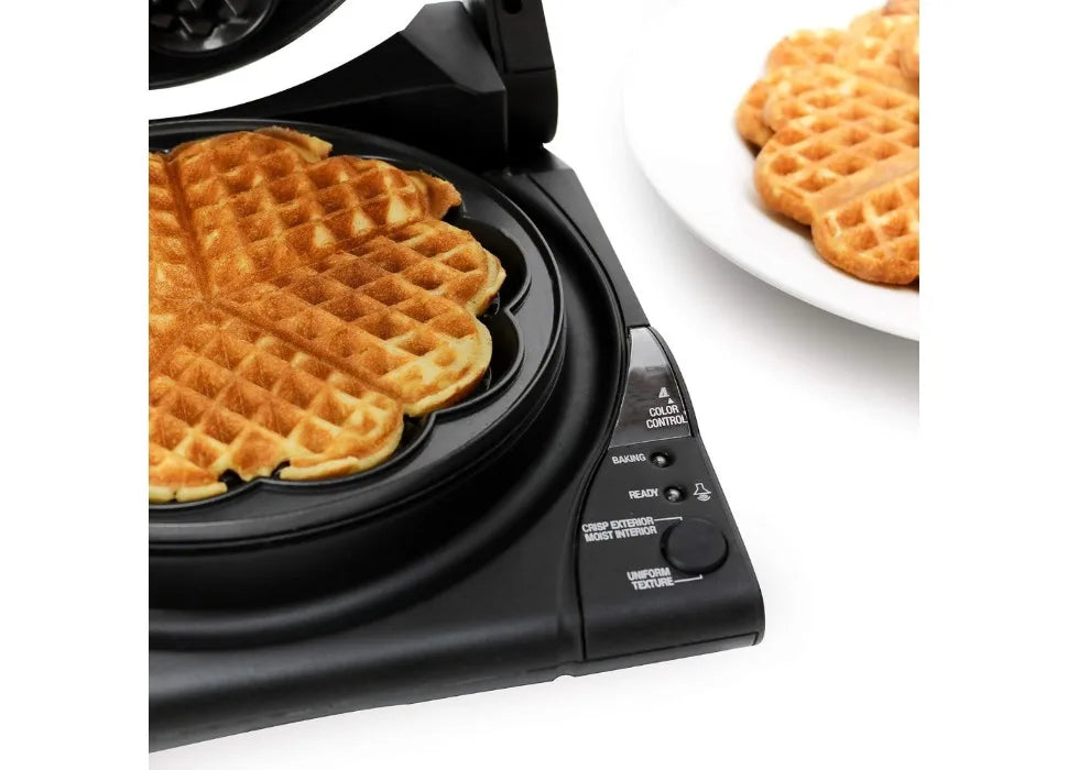 Taste / Texture Select Waffle Maker Traditional Five of Hearts Easy to Clean Nonstick Plates, 5-Slice, 1100W, Black
