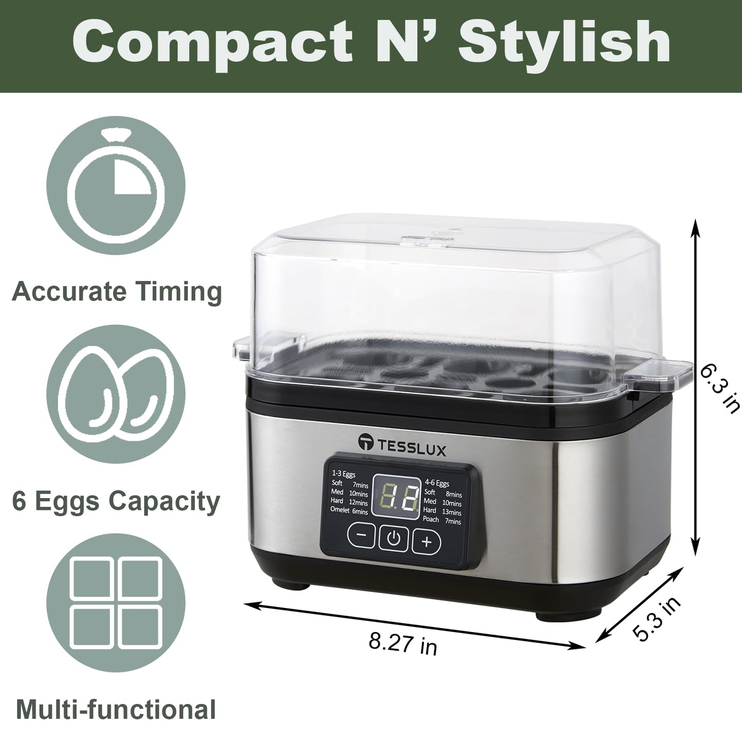 - 6 EGG CAPACITY - Cooks up to 6 eggs at a time, perfect for larger meals and family gatherings. Time-saving feature for cooking multiple servings at the same time.