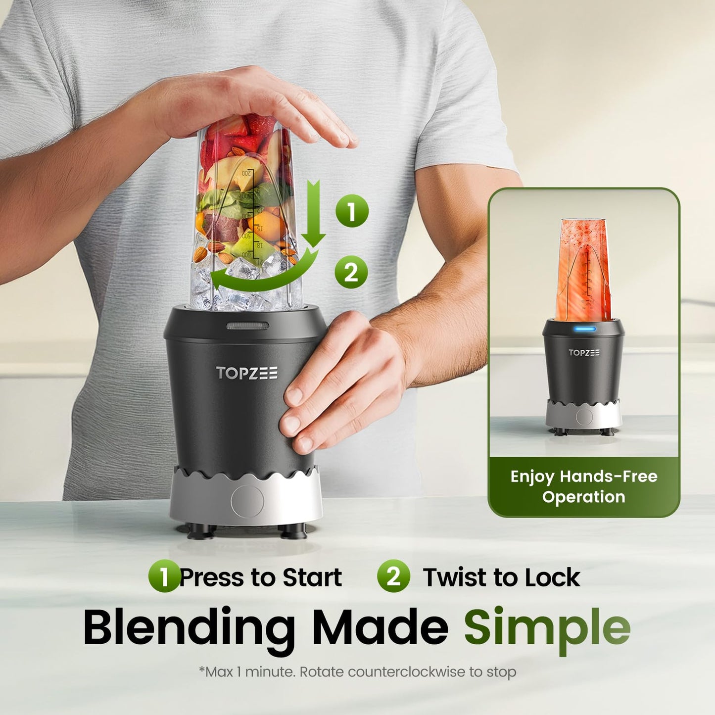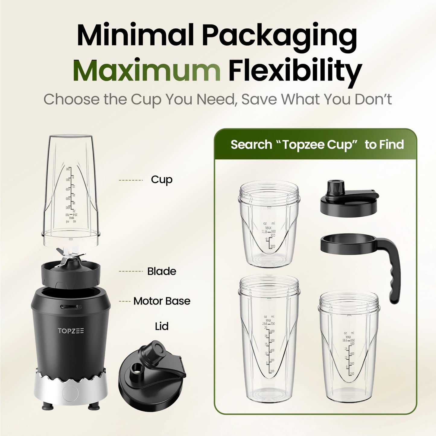 TOPZEE Blender for Smoothies, 1000W Slushie Machine, Bullet Blenders for Kitchen, Personal Portable Blender, Protein Shake Mixer with 24oz Easy Go Cups, Licuadora, Dishwasher Safe, Max 1200W