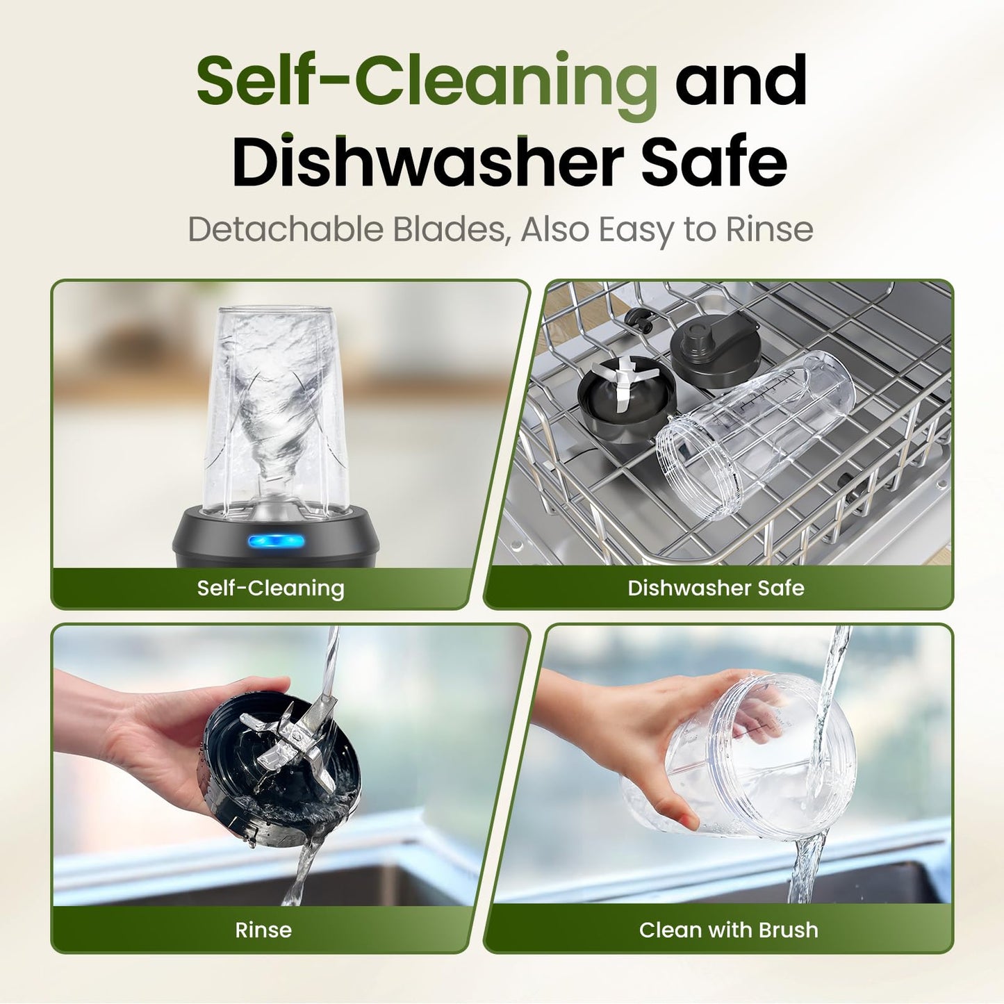 - 【Easy Dishwasher Cleaning】The smoothie blender cups and to-go lids are dishwasher safe can be easily placed in the dishwasher to release your hands when you get home from work.