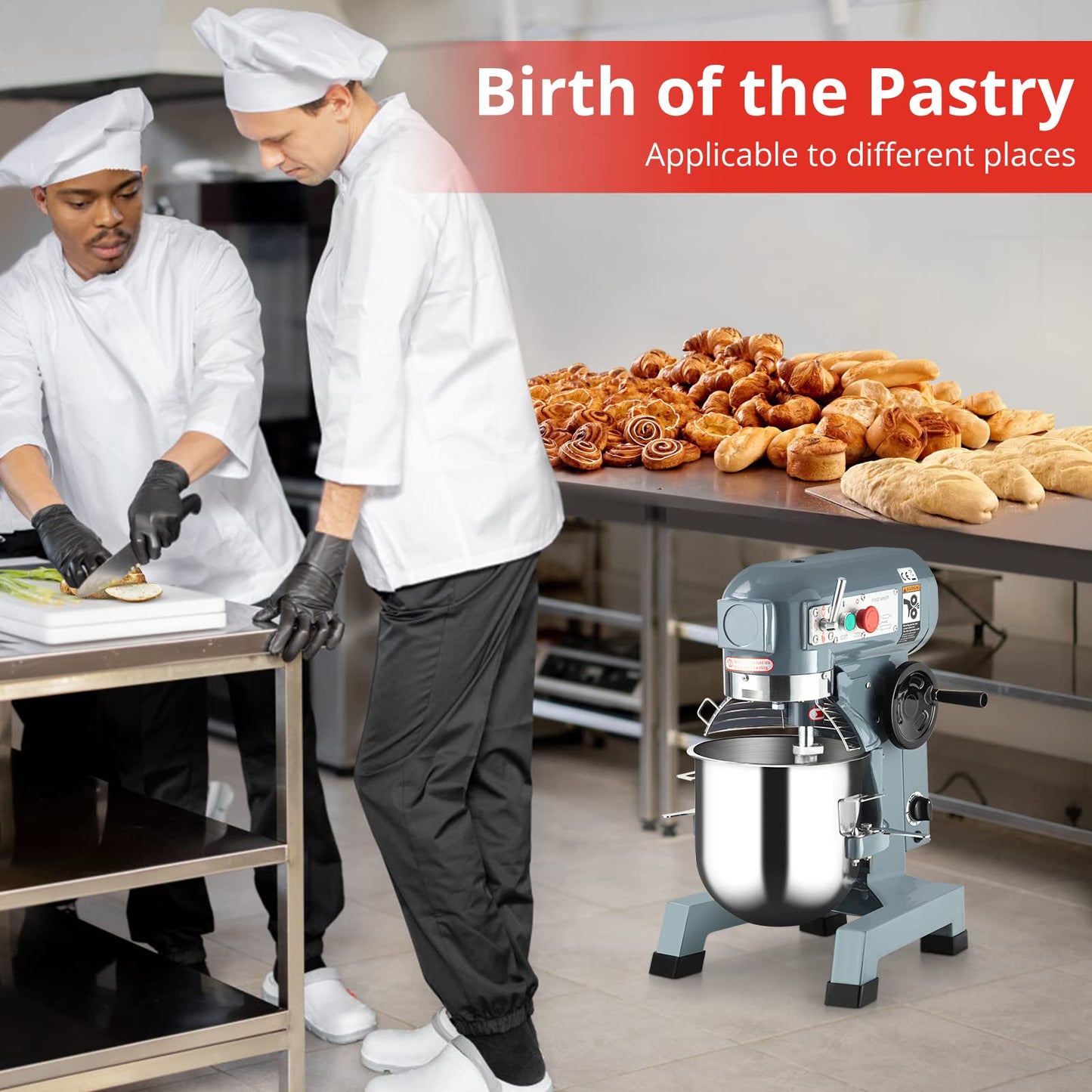 - 【Excellent Range of Use】The stand mixer fixed feet are equipped with non-slip feet,reduce vibration and noise,The START and STOP buttons operate independently, ensuring security.Widely used in bakeries, restaurants, pizzerias, commercial kitchen, and canteens.