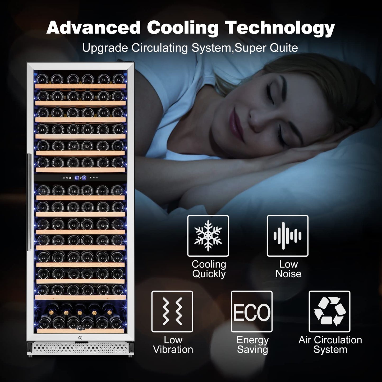 Tylza 24 Inch Wine Fridge Dual Zone, 154 Bottle Wine Cooler Refrigerator With Stainless Steel and Professional Compressor, Fast Cooling Low Noise and No Fog Built-in or Freestanding