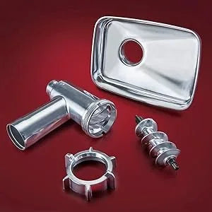 - 3 Stainless Blades, 5 Grinding Plates, 1 Sausage Stuffing Plate, Set of 3 Stuffing Tubes with adaptor and Kubbe Attachment