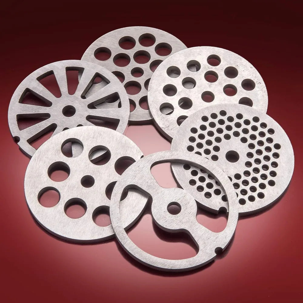 6 Grinding Plates Including a Sausage Stuffing Plate5 Sizes of Grinding Plates and 1 Sausage Stuffing Plate come standard with this unit.
