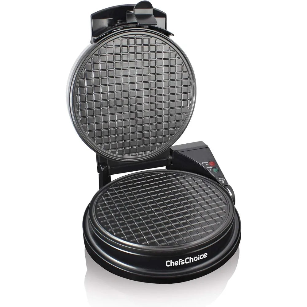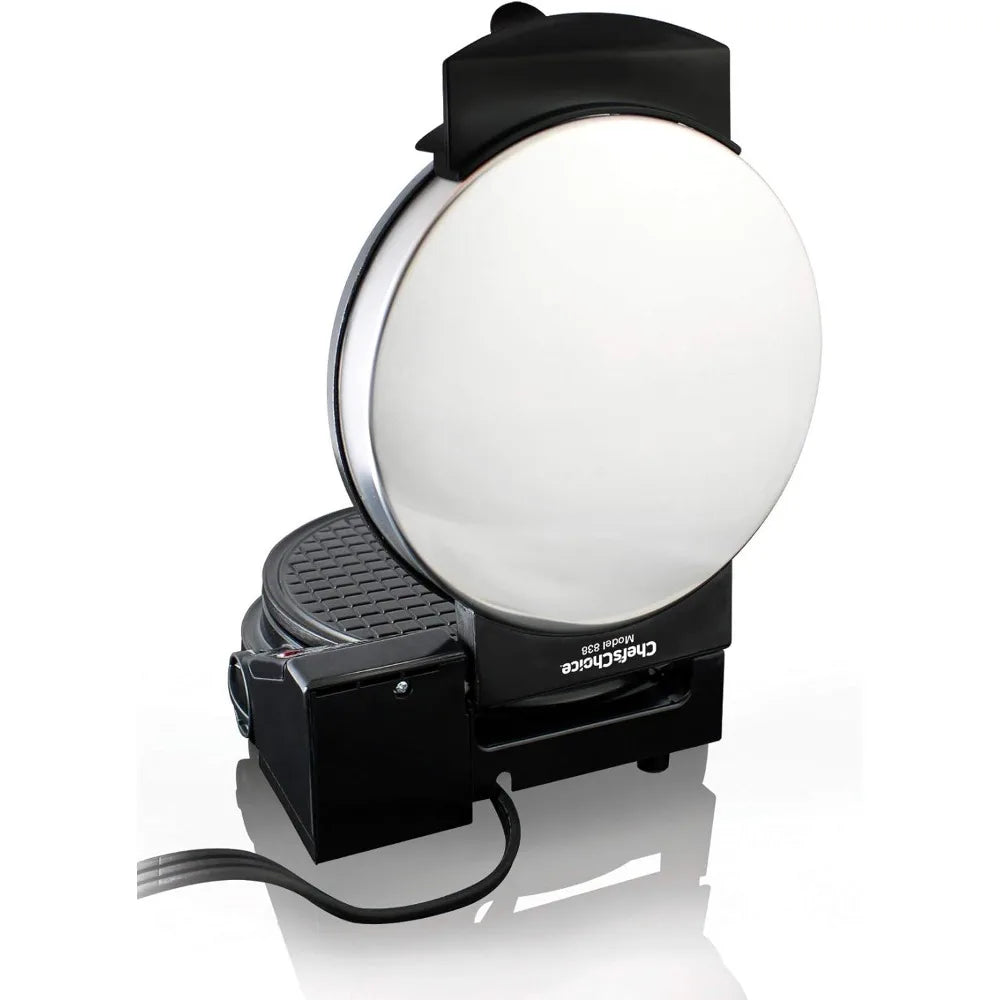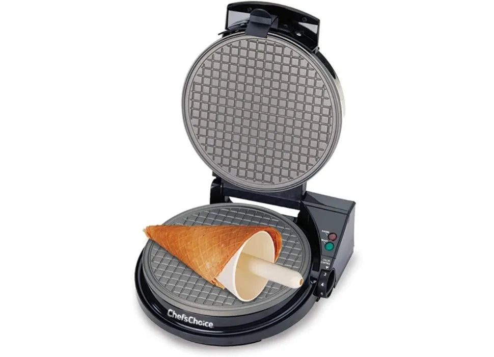 Enjoy delicious, homemade sugar cones or waffle bowls in just seconds (and delight in the fresh baked aroma). Nothing beats the caramel aroma and fresh flavor of home-baked waffle cones, and this appliance makes one in about two minutes. And, because it has instant temperature recovery, it makes cone after cone without delay. The baking process itself averages about 90 seconds, depending on the degree of browning required. A color-control dial makes that personal-taste choice easy to select. Accompanying the waffle-cone maker is a plastic cone-rolling form. Illustrated instructions show how easily it's done, and recipes provide the remaining information needed to become a master cone maker. The nonstick waffle plates measure 7 inches in diameter and clean with the swipe of a cloth. Overall, the 1,000-watt appliance measures 8-3/4 inches wide, 3-1/4 inches high, and 10 inches deep.