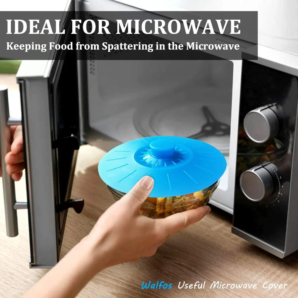 WALFOS Food Grade Silicone Silicone Bowl Lids Heat Resistant Microwave Cover Seal Reusable Suction Seal Covers for Bowls Plate