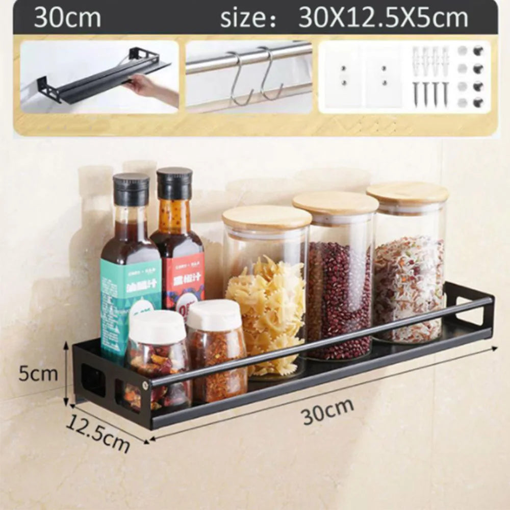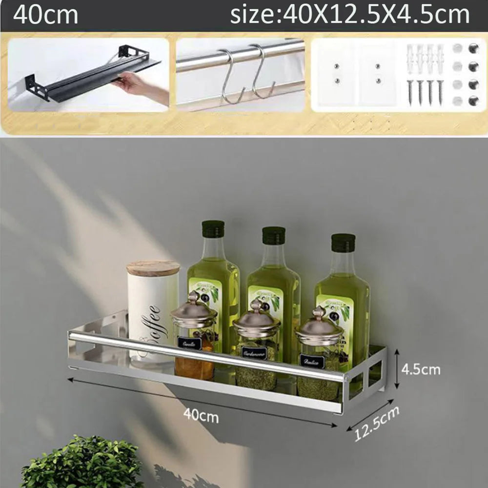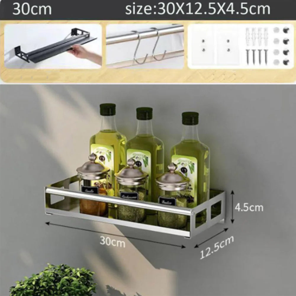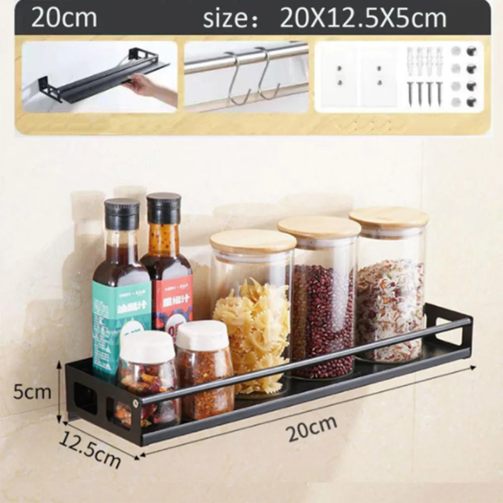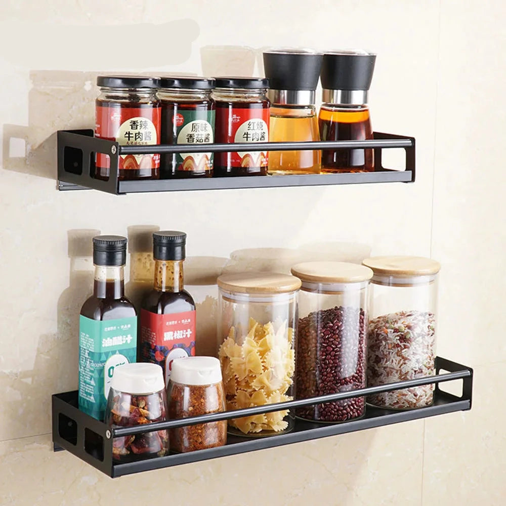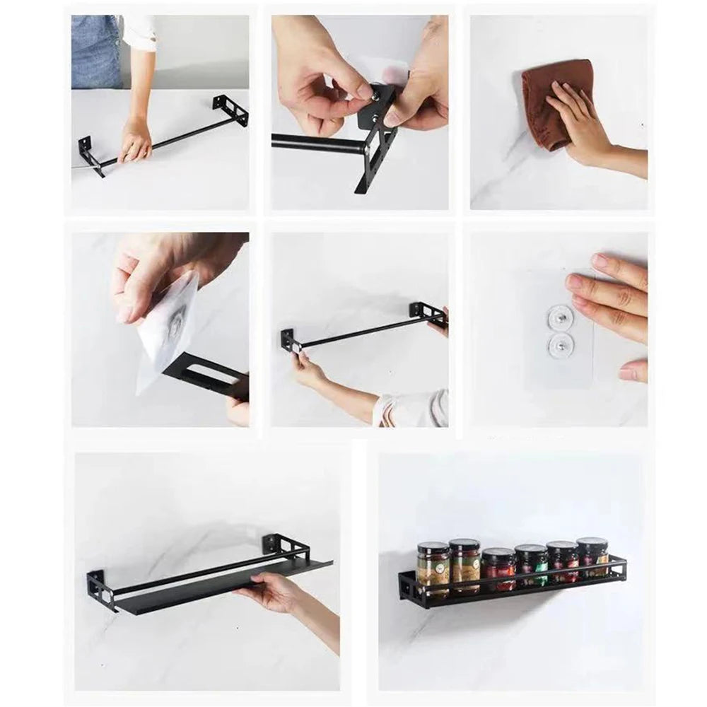 Walfos Kitchen Organizer Wall Mount Bracket Wall Storage Rack Spice Jar Rack Cabinet Shelf Kitchen Gadget Supplies Bathroom Rack