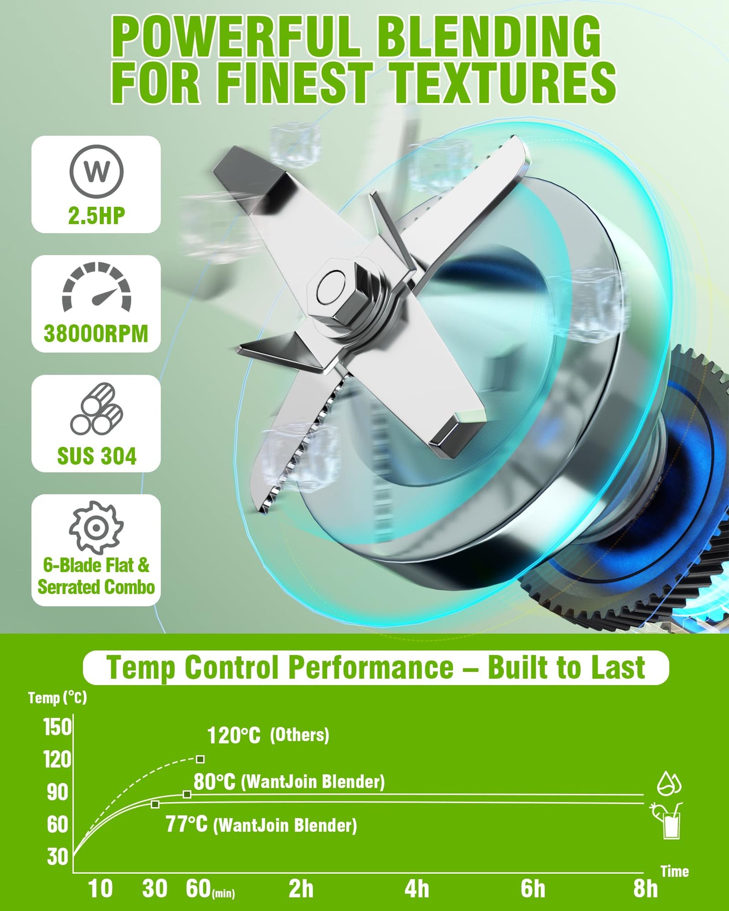 - MULTI-FUNCTIONAL QUIET BLENDER: WantJoin quiet blender is perfect for busy families, fitness enthusiasts, and health-conscious individuals. With 15 speed settings and an easy-to-use mechanical knob, you can blend everything fruit and vegetable juices to smoothies, ice creams, nut butters, baby food, and DIY drinks. Whether for a healthy breakfast or a post-workout shake, this versatile blender makes your kitchen routine effortless and enjoyable.
