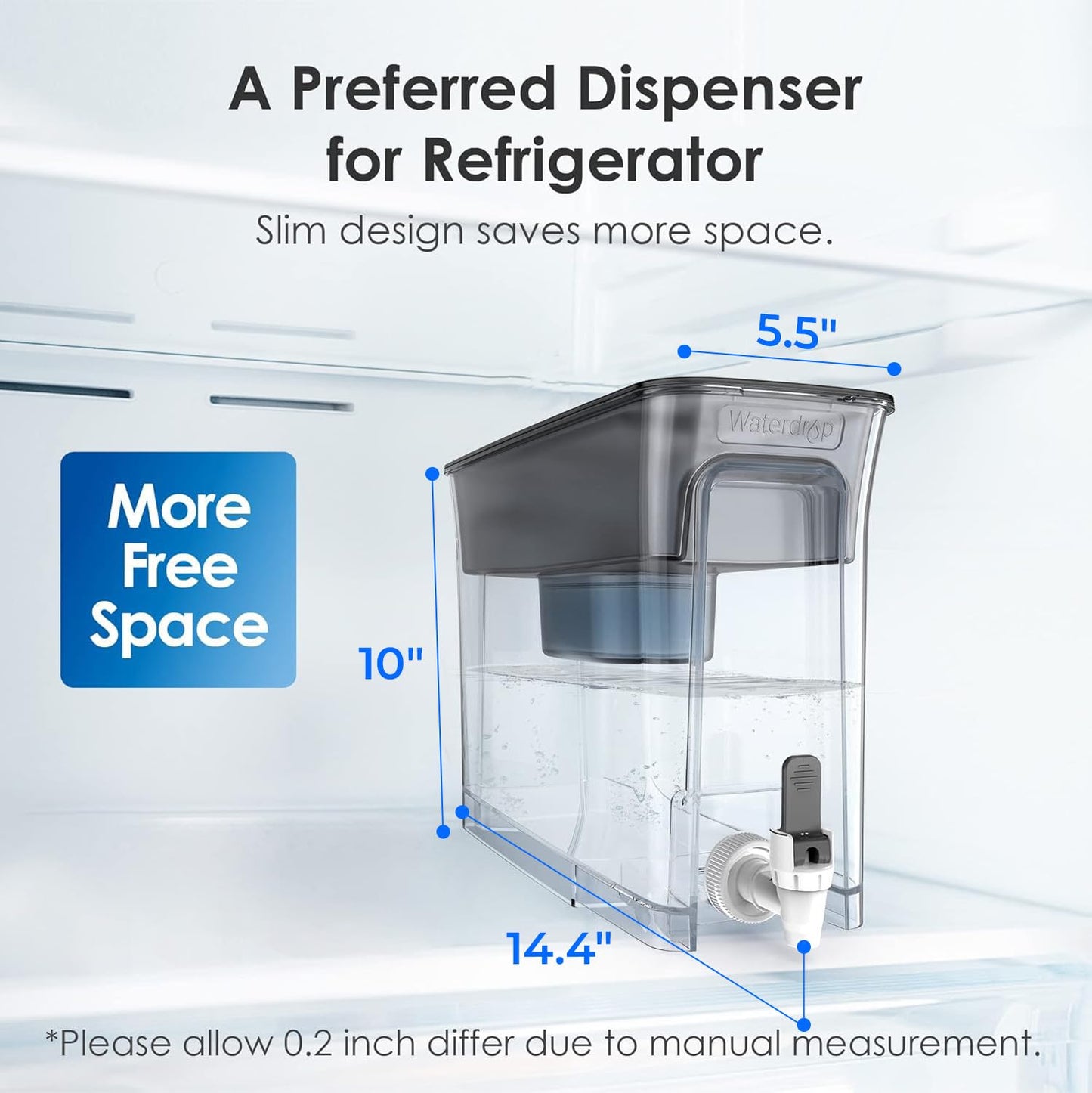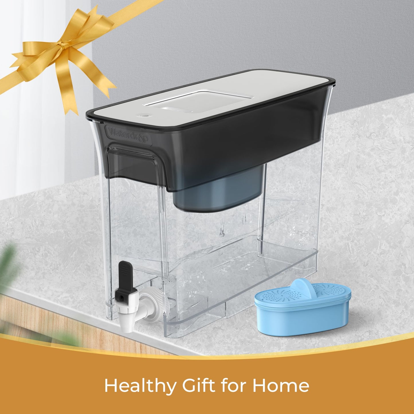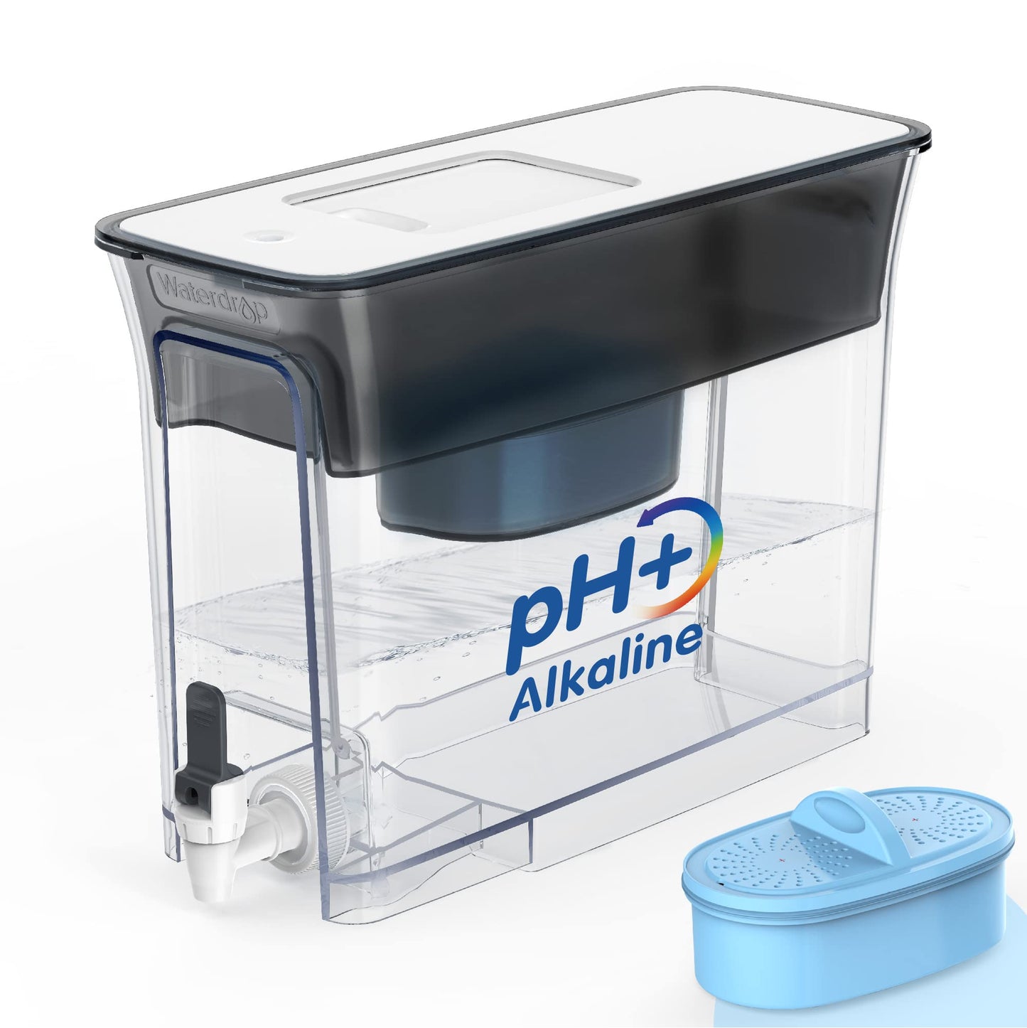 Waterdrop Slim Alkaline Water Filter Dispenser, Large 35-Cup, Up to PH 9.5, Healthy, Clean & Toxin-Free Mineralized Alkaline Water, 100-Gallon, BPA Free, Black (1 Filter Included)