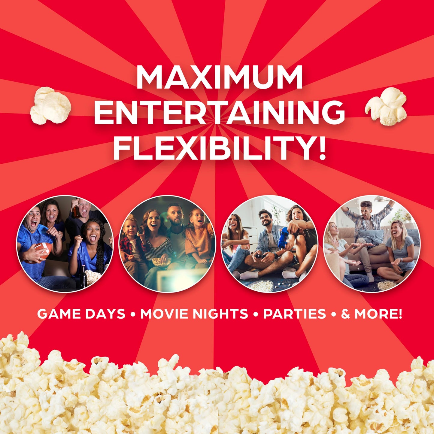 - MOVIE-THEATER STYLE POPCORN AT HOME: Pop up to 4 quarts of fresh, delicious popcorn in just minutes—perfect for movie nights, parties, and special events.