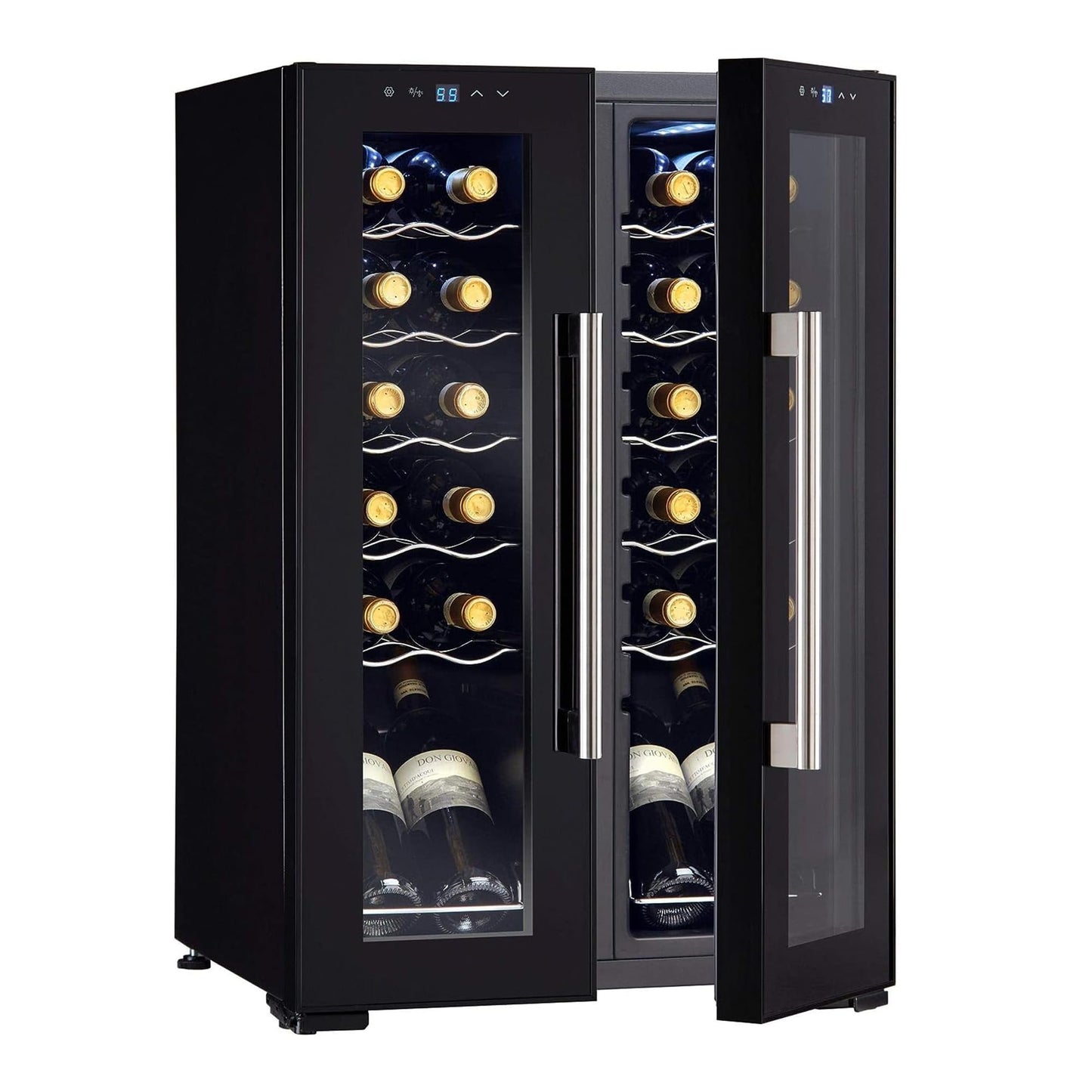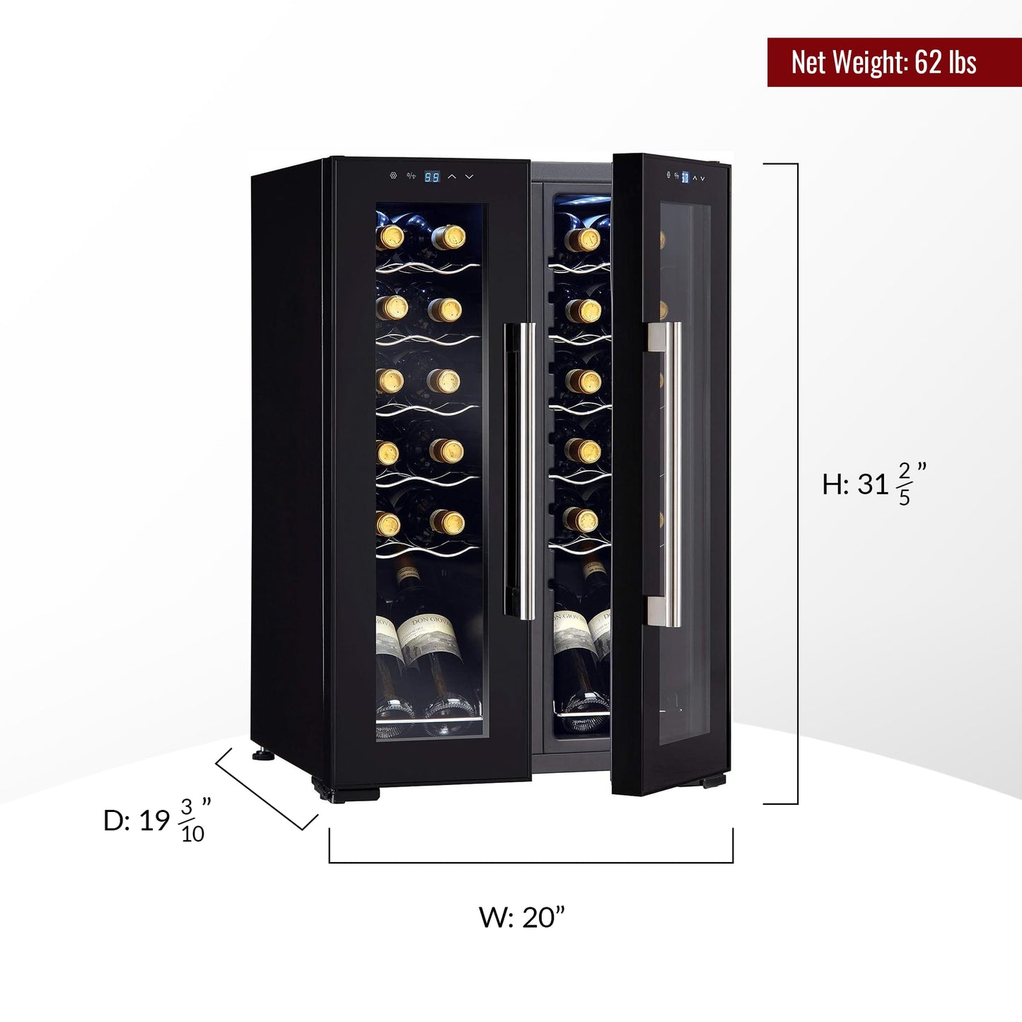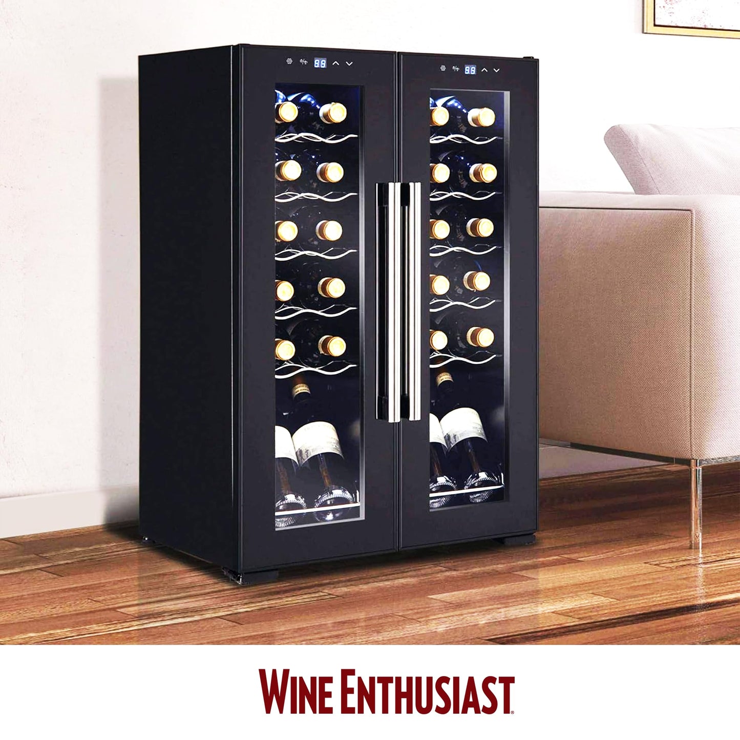 Wine Enthusiast 24-Bottle French Door Dual-Zone Compressor Wine Cooler - Freestanding Wine Refrigerator with Split Storage & 41-64°F Temperature, 2 Glass Pane Doors & Touchscreen LED Controls