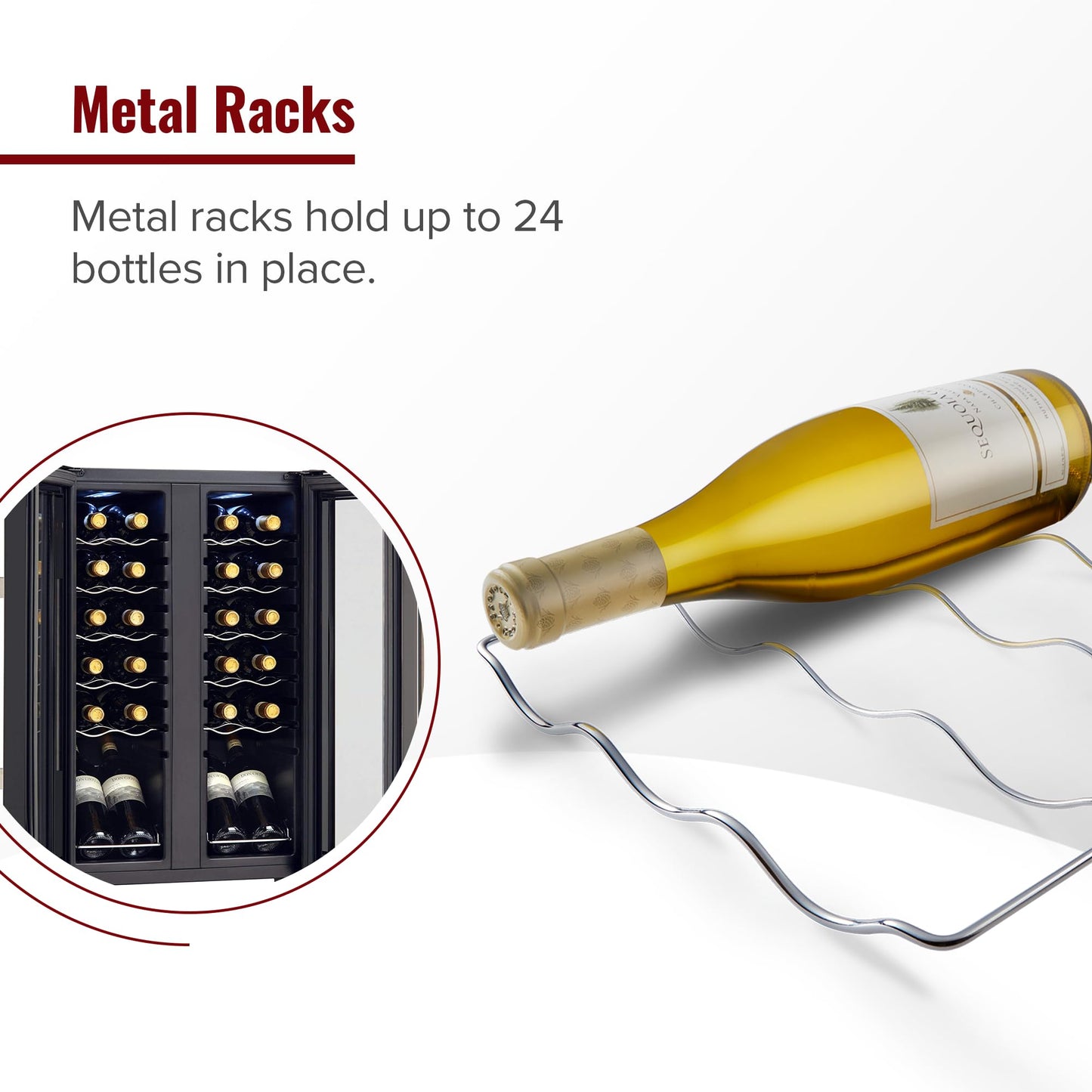 - Spacious 24-Bottle Capacity: With a generous 24-bottle capacity, this wine cooler allows you to curate an extensive wine collection. Whether you're a wine enthusiast or a collector, this cooler provides ample space to showcase and age your favorite wines