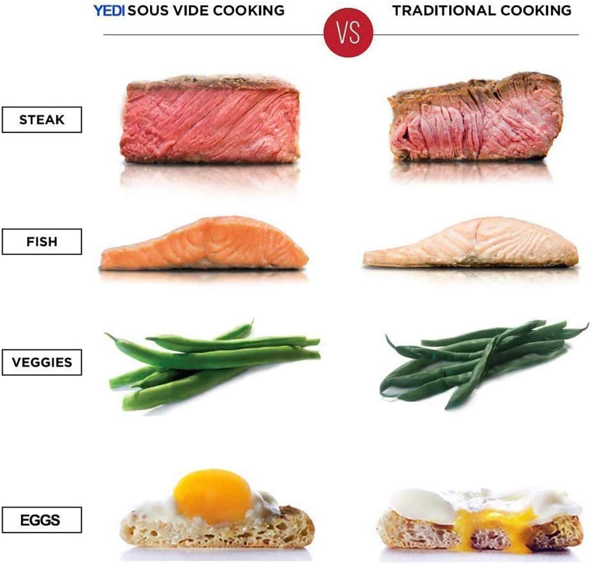 - HEATS UP FAST: 1000 Watts of power for hyper-fast water heating. Designed to be Ultra-Quiet while acheiving Michelin restaurant level quality cooking results. Cook everything from Beef, Chicken, Pork, Veggies, Seafood, Eggs, Chocolate and more! No fuss, no noise, no overcooking anymore.