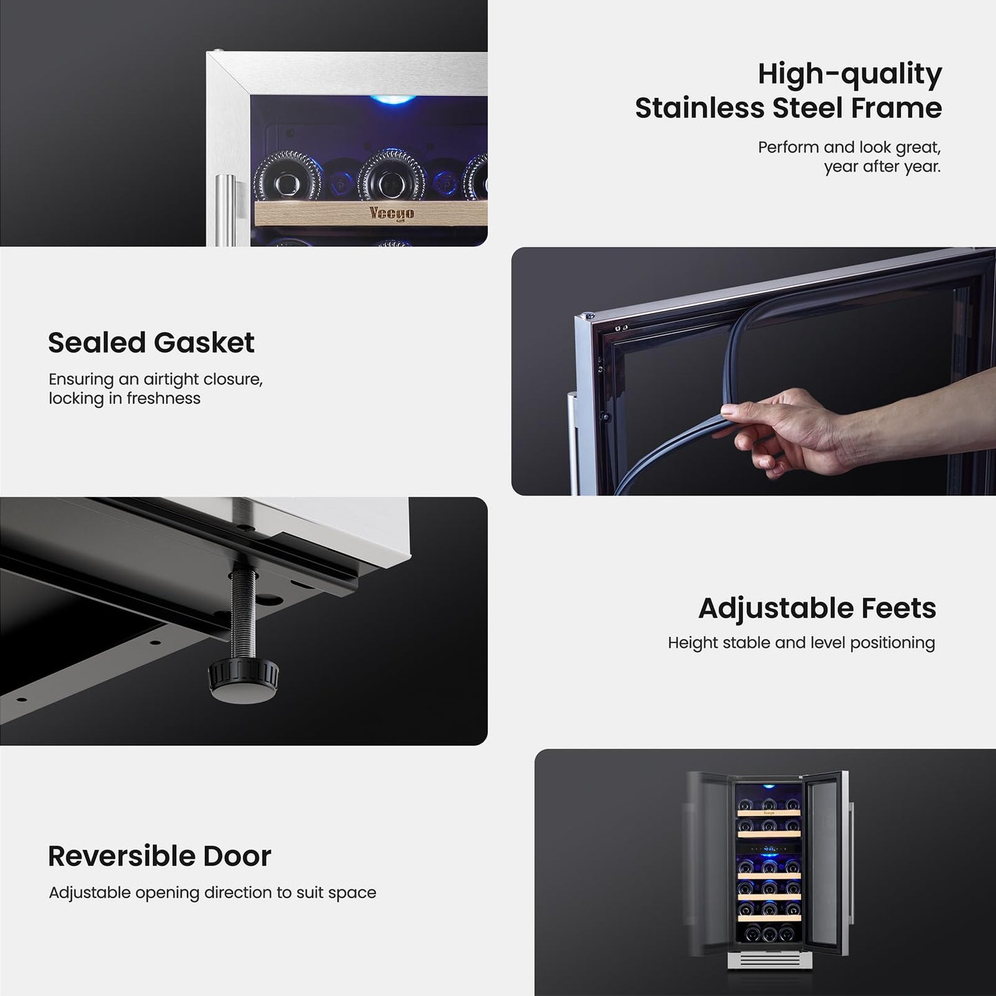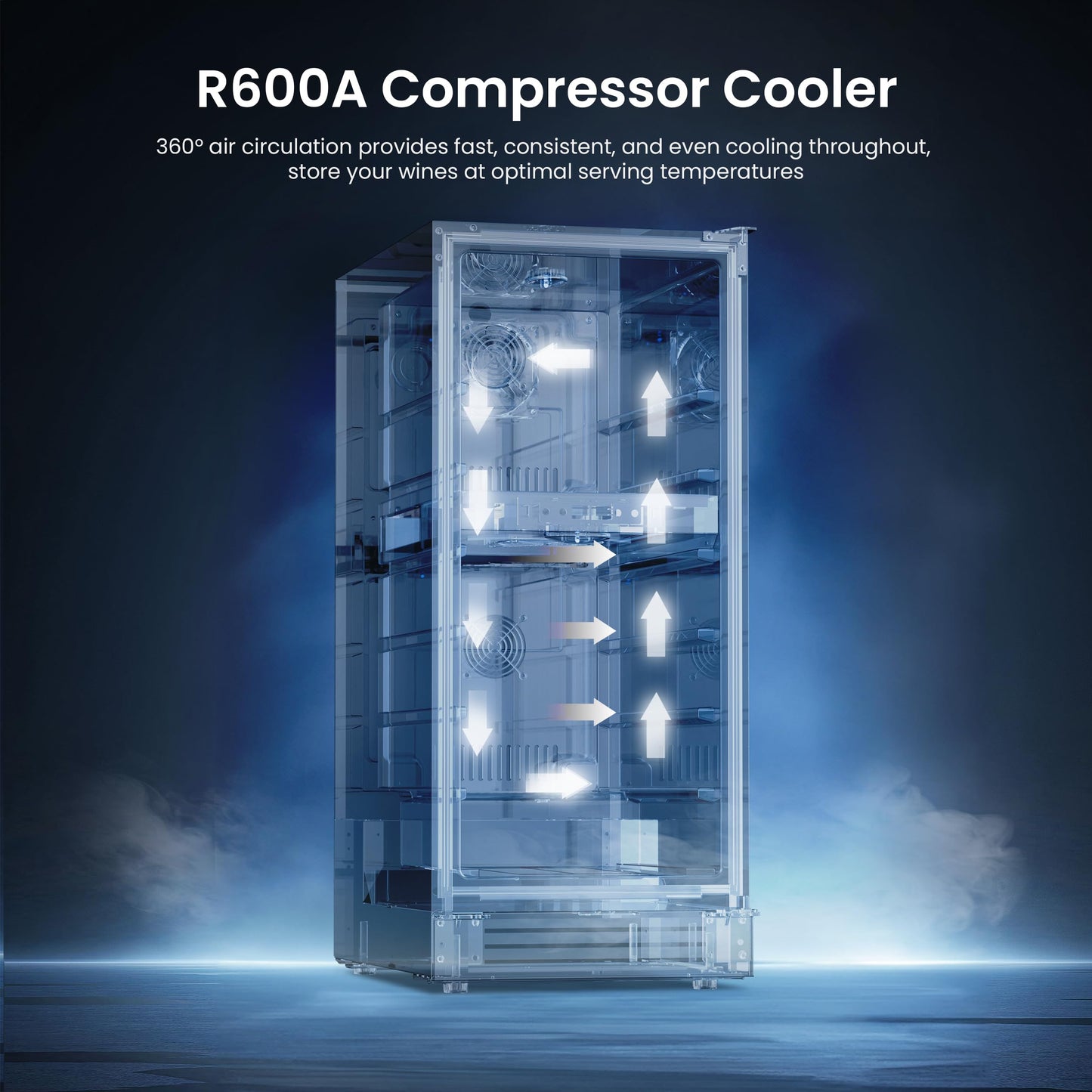 - 【ADVANCED COMPRESSOR & LOW NOISE & ANTI-VIBRATION】 This wine fridge ensures your wines are chilled evenly without disturbing sediments, and no vibration helps maintain your wine's rich flavor and taste. Enjoy silent, quick, and powerful cooling with our advanced cooling system. It is ideal for families and wine enthusiasts alike.