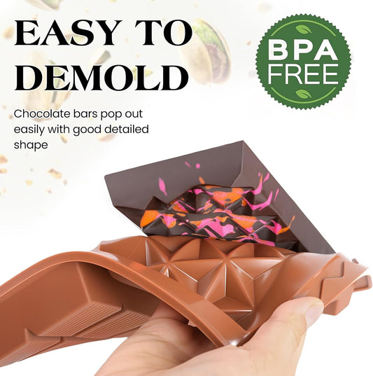 1 Pc Chocolate Bar Mold Deep Dubai Break Apart Candy Molds Thick Stuffed Silicone Molds for Filling Knafeh Pistachio Chocolate Bar and Wax Melts Large (Pyramid Shape)
