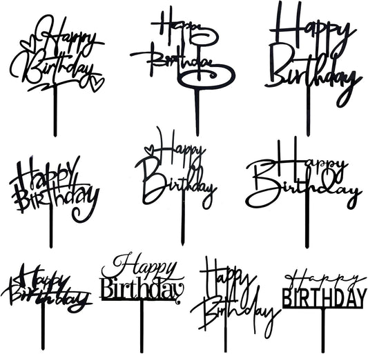 10 PCS Black Happy Birthday Cake Topper Acrylic Cupcake Topper A Series of Birthday Cake Supplies Decorations