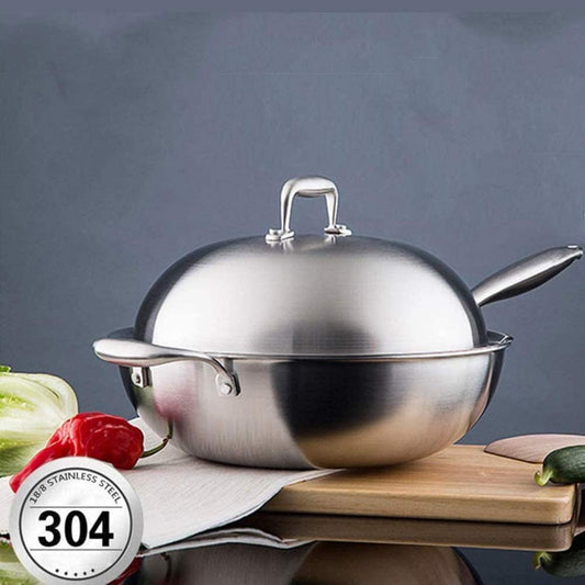 Wok With Lid, Professional 3-Ply Stainless Steel Chef's Pan with Lid,Fume-free Wok,suitable for Electric, Ceramic, Halogen, Gas and Induction Hobs, 32cm