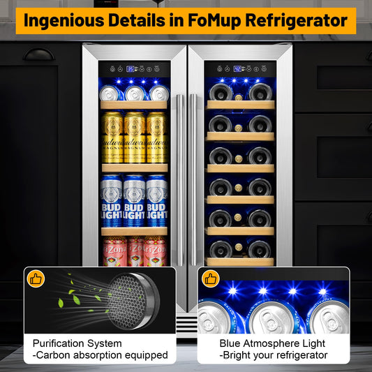 Wine and Beverage Refrigerator, 24 Inch Beverage Cooler Dual Zone with Glass Door, Built-in/Freestanding Beverage Fridge with Upgraded 20 Bottles and 60 Cans Large Capacity
