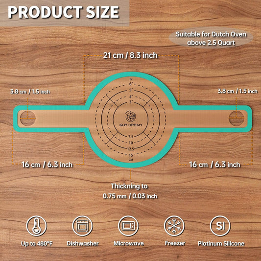 GUYDREMAT Bread Sling - Perfect Silicone Baking Mat for Sourdough Bread Baking – Superior Cast in Iron Dutch Oven Liner, 2 Pieces with Storage Band in GUY DREAM Classic Pack