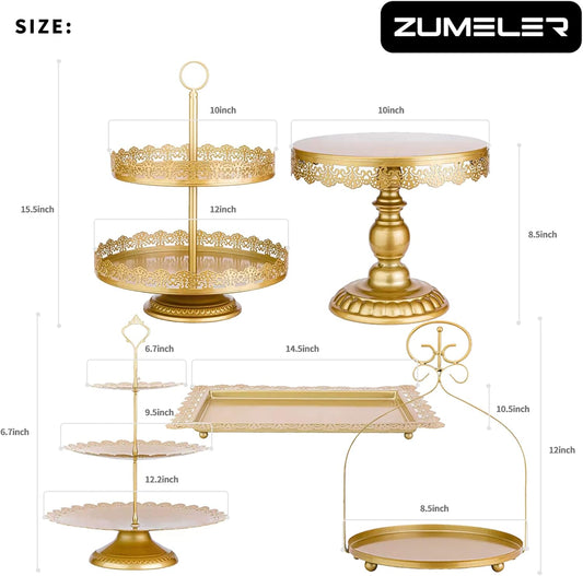 ZUMELER Gold 5Pcs Cake Stands Set Metal Round Cupcake Holder Cookies Dessert Display Plate Serving Tower Tray Platter with Handl for Baby Shower Wedding Birthday Party Celebration
