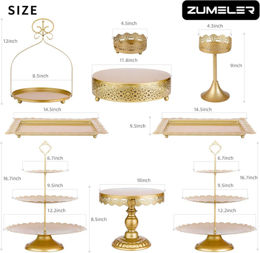 ZUMELER 9Pcs Metal Cake Stands Round Cake Stands Candy Fruite Display Plate Cupcake Serving Tower for Wedding Brithday Party Celebration Home Decoration,gold