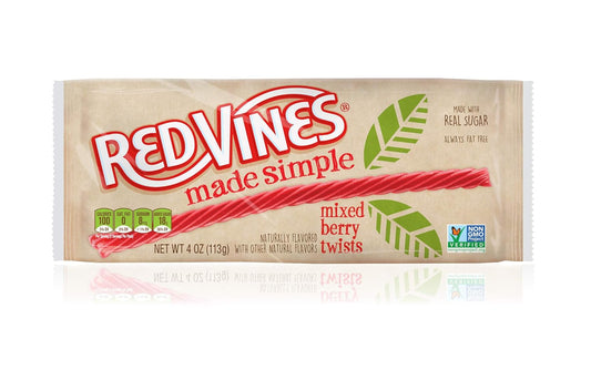 Red Vines Made Simple Licorice, Mixed Berry Flavored Twists, 4oz Tray (12 Pack), Soft & Chewy Candy, Assorted (50204)