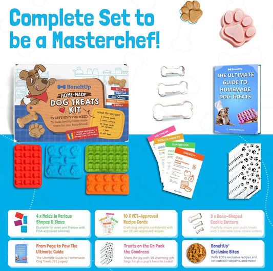 Homemade Dog Treats Set Silicone Molds Cookie Cutters with Healthy Vet Approved Recipes, Puppy Treats with Paws & Bones Food Grade Silicone Trays and for Candy and Dog Ice Cubs