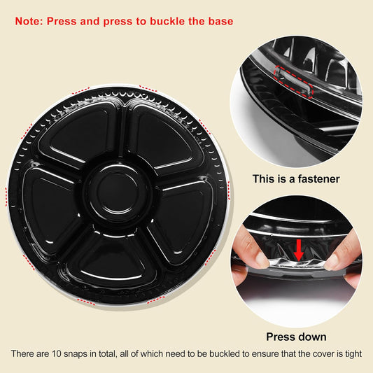 mwellewm 10 Pcs Round Plastic Appetizer Tray with Lid Divided Serving Tray, Disposable Food Storage Containers, Kids Snack, Fruit Platter Vegetable Trays for Party and Buffet