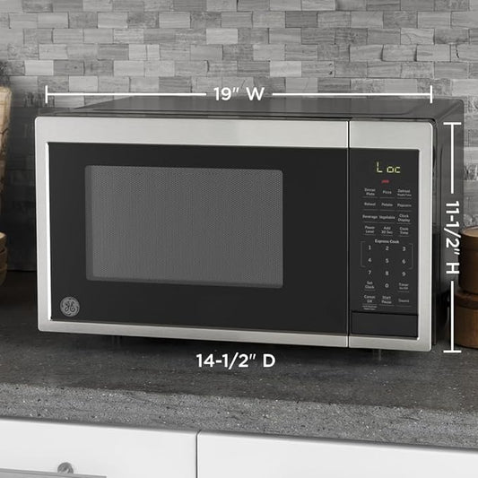 GE Countertop Microwave Oven, 1,200-watt Capacity, 2.0 Cubic Ft., 8 Auto Setting Cooking Settings, Child-Lock Technology, Kitchen Essentials for the Countertop, Dorm Room or Apartment, Satinless Steel