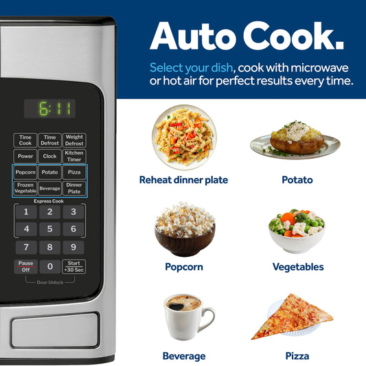 Pre-programmed settings: For common foods like popcorn, pizza, and vegetables.