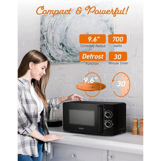 Black Microwave, with Rotary Switch Knob, 700W Countertop Small Microwave, with Microwave Turntable Plate, 6 Level Power