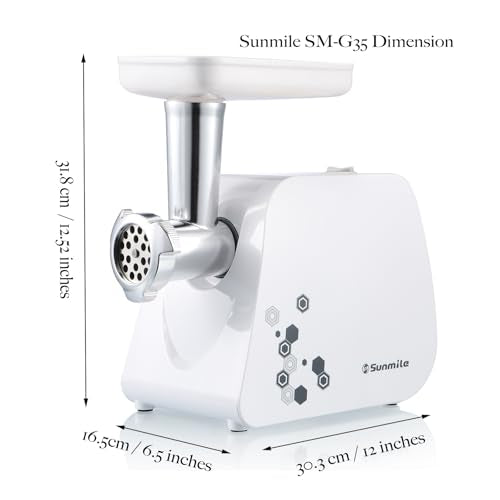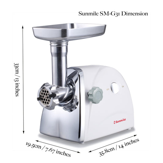 Sunmile SM-G31 Electric Meat Grinder - Max 1HP 800W- ETL Meat Mincer Sausage Grinder, Stainless Steel Cutting Blade, 3 Stainless Steel Grinding Plates, 1 Big Sausage Stuff