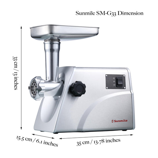 Sunmile SM-G33 Electric Meat Grinder - 1HP 800W Max Power - ETL Stainless Steel Meat Grinder Mincer Sausage Stuffer, Stainless Steel Blade and Plates and 1 Sausage Maker