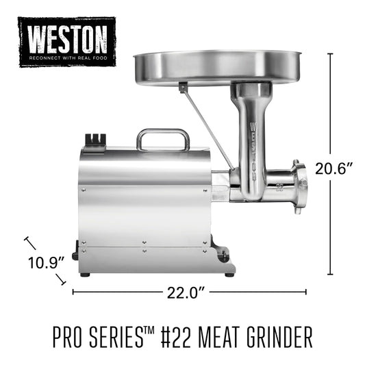 Weston Pro Series Electric Meat Grinder, Commercial Grade, 1120 Watts, 1.5 HP, 14lbs. Per Minute, Stainless Steel (10-2201-W)
