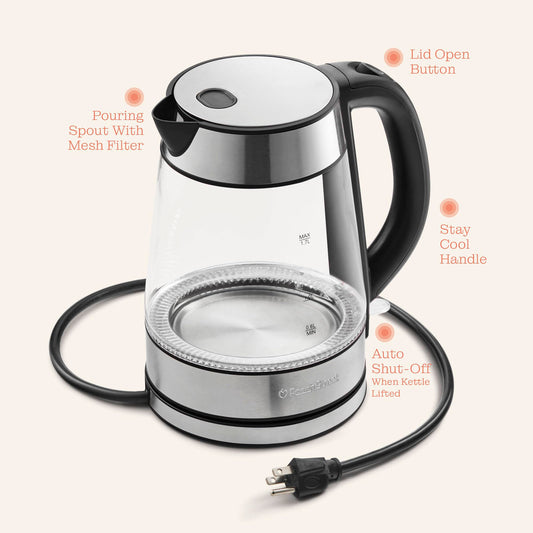 A borosilicate glass electric kettle lets you visually monitor the water level and boiling process. Many feature LED indicator lights and auto shut-off functions for both beauty and safety.