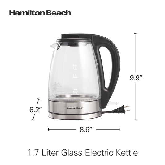 Hamilton Beach 1.7L Electric Kettle, Water Boiler & Heater, LED Indicator, Built-In Mesh Filter, Auto-Shutoff & Boil-Dry Protection, Cordless Serving, Clear Glass (40864)