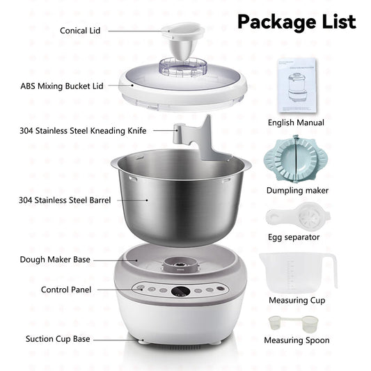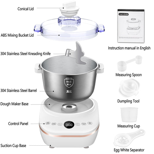 Dough Mixer 7L Large Capacity Electric Dough Maker with Ferment Function for Baking Bread Dough&Pizza Dough - Dough whisk 304 Stainless Steel Blender Add water/seasoning with Top Small Window