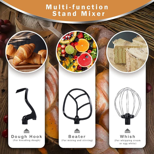Our stand mixers come equipped with high-performance motors ranging from 300W to 1000W, ensuring smooth and efficient mixing. Plus, most models include attachments such as: