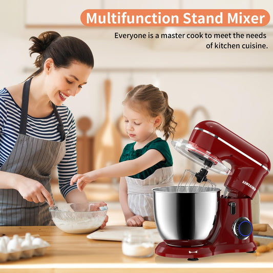 SAMSAIMO 3-IN-1 Electric Stand Mixer, 660W 10-Speed With Pulse Button, Attachments include 6.5QT Bowl, Dough Hook, Beater, Whisk for Most Home Cooks, Empire Red