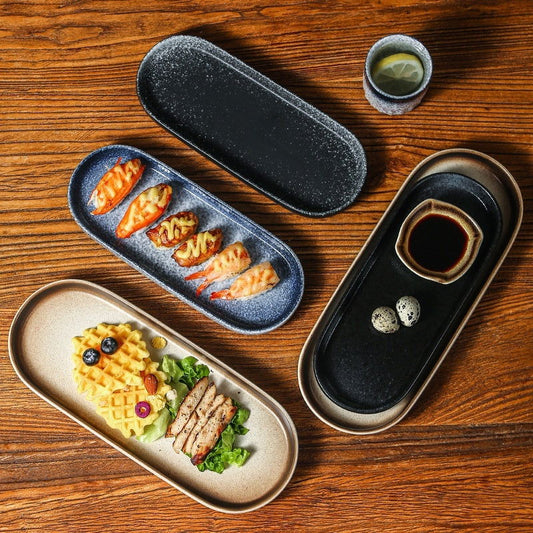 Японська Велика Довга Тарілка Довга Тарілка Керамічна Тарілка Суші Сашимі Ресторан Ресторанний Стіл