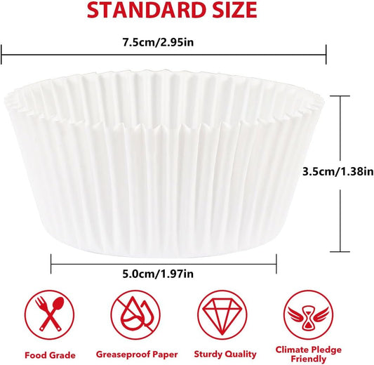 Caperci Heavy Duty Standard White Cupcake Liners 150 Counts - Grease-Resistant Paper Muffin Baking Cups, Odorless, No Muffin Pan Needed, Easily Peels (White)