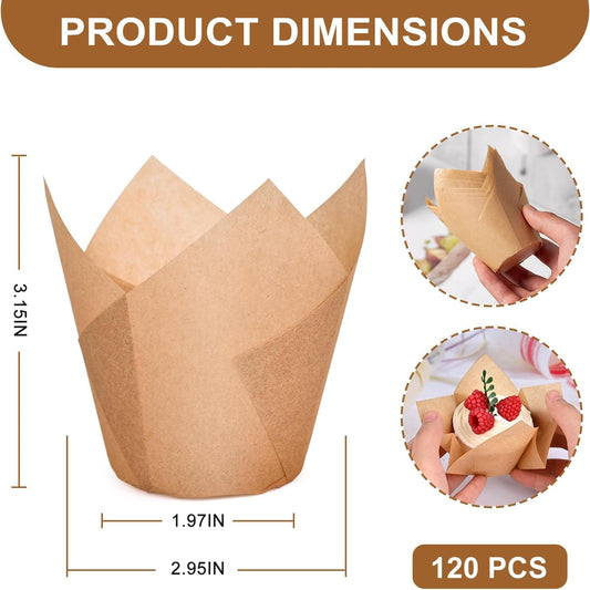 120 Counts Natural Tulip Cupcake Liners for Baking Cups, Food Grade Parchment Paper Muffin Liners Holders, Standard Tulip Cupcake Liners, Greaseproof Cup Cake Wrappers for Party, Christmas