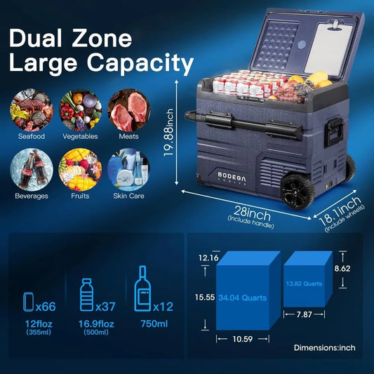 Car Refrigerator, RV Car Fridge Dual Zone WIFI APP Control, Portable Freezer, 48 Quart (45L)Car Cooler 12/24V DC and 100-240V AC