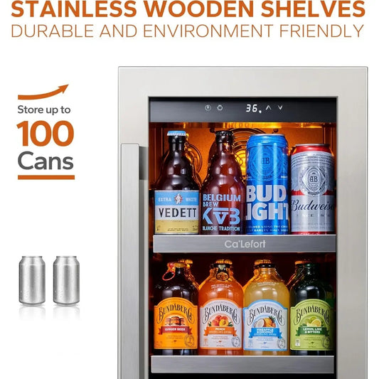 Independent 15 inch beverage refrigerator, capable of storing 100 cans of beverages. Refrigerator 34 ° F -54 ° F
