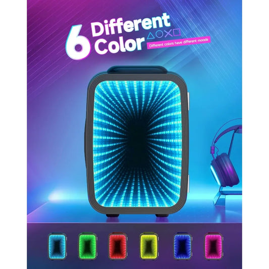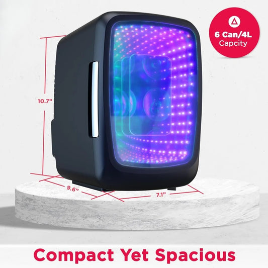 Mini Fridge, 4 Liter/6 Cans Small Refrigerator with LED Light, Gaming Light Up Mini Beverage Refrigerator, Stealth