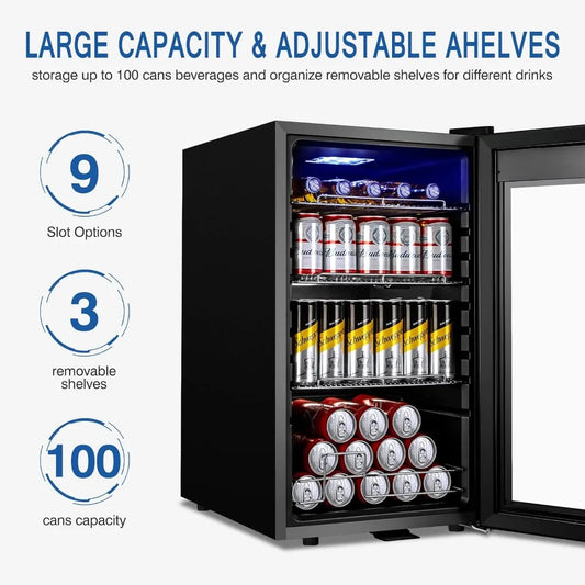 Beverage Refrigerator Cooler-120 Cans Mini Fridge Cooler with Glass Door, Adjustable Shelves & Digital Temperature Display